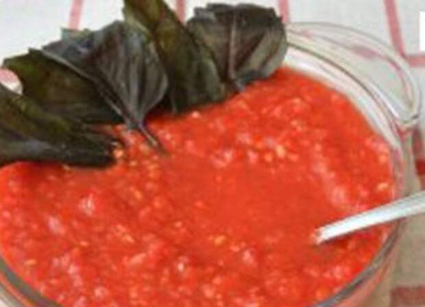 3 Перелить в казан или кастрюлю с толстым дном прокрученные овощи, довести до кипения, огонь убавить до среднего и кипятить до выкипания лишнего сока. Где-то через полтора часа добавить острый перец, чеснок и посолить. Кипятить еще минут 30, пробуйте и добавляйте на свой вкус, острый перец, чеснок или соль.